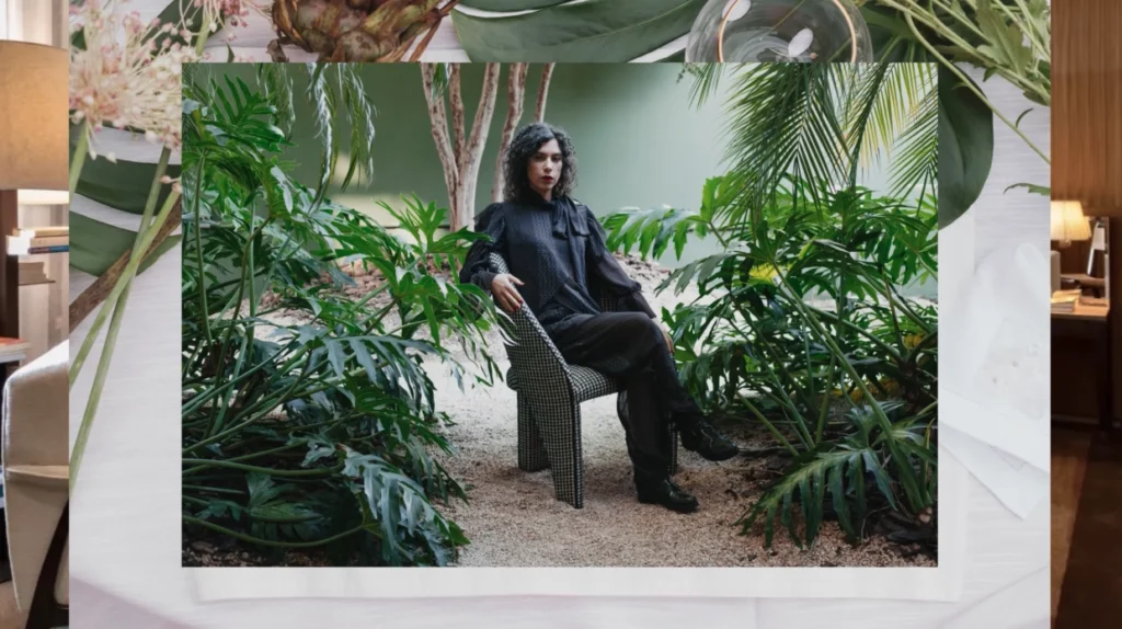 Delphine Araxi est née à Paris. Elle a également souhaité donner naissance à son fils Saam à São Paulo. Qu’est-ce qui distingue cette extravertie franco-arménienne au large sourire souligné par le rouge Urucum, toujours vêtue d’un mélange de haute couture et de vêtements de sport ? L’art de mélanger les genres dans un enchantement créatif, tout comme dans ses projets d’architecture et de design d’intérieur.